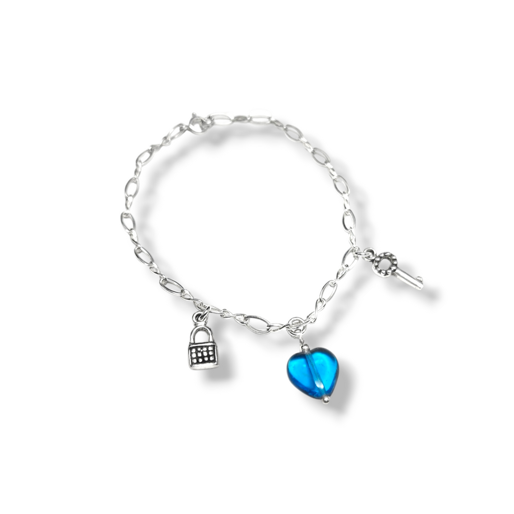 Pulsera con dijes en plata 925 y corazones cristal.