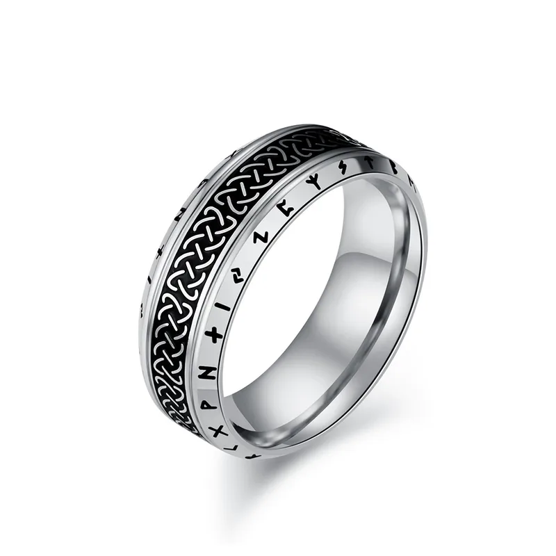 Anillo de acero inoxidable en color natural con diseño de runas celtas.