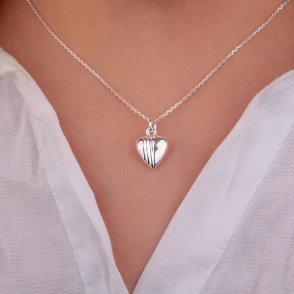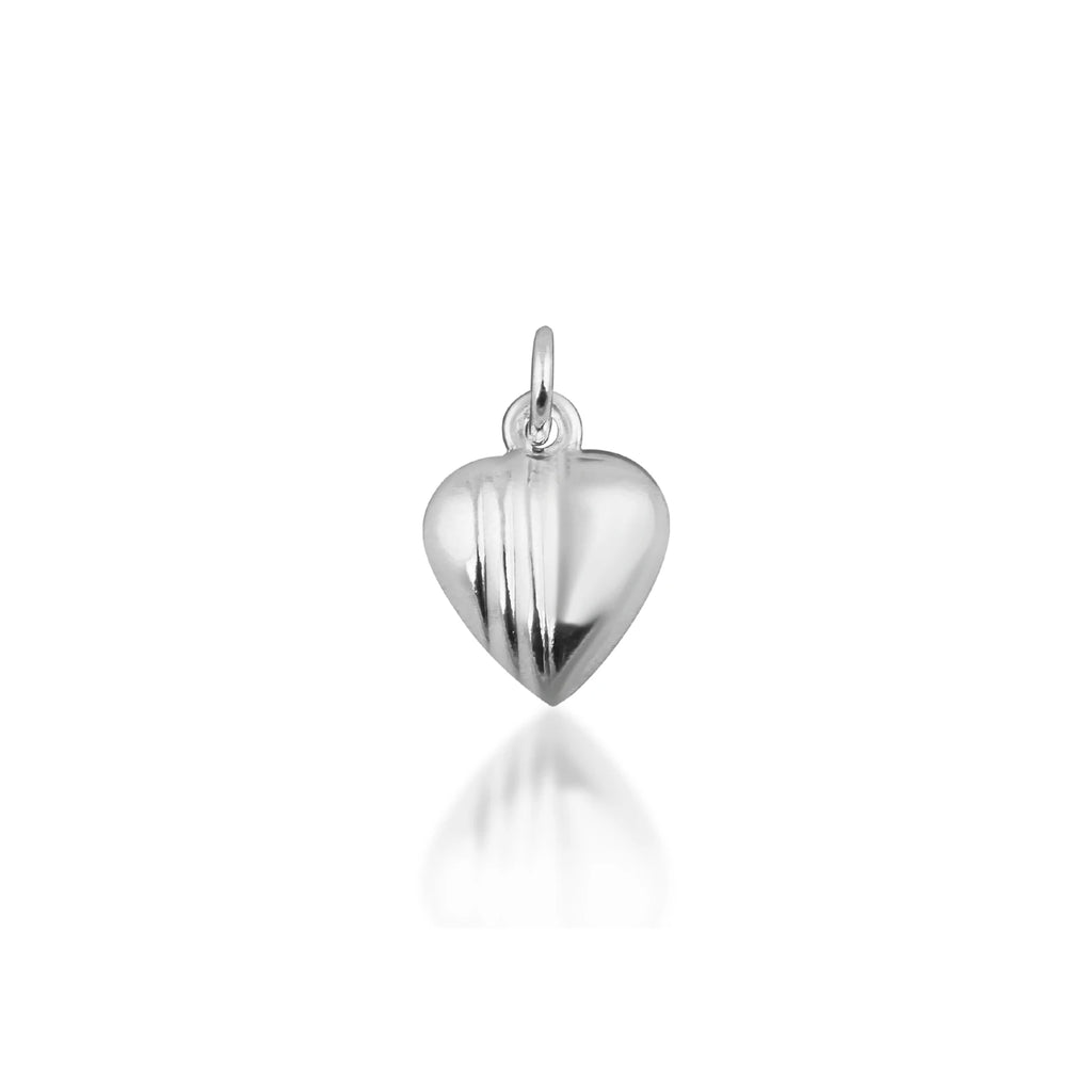 Dije de corazón mitad liso y mitad con rayas en plata 925.